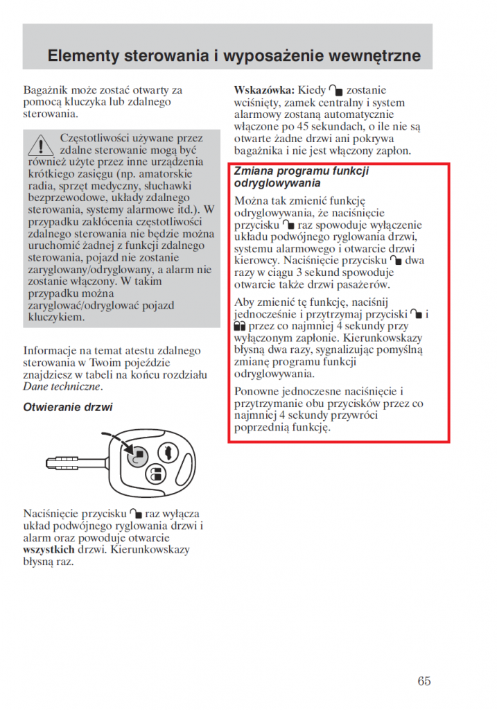 Witam, Ja od pewnego czasu także mam problem z centralnym zamkiem, gdy zamknę lub otworzę drzwi kluczykiem to wszystko jest w porządku natomiast gdy otworzę samochód pilotem to po upływie dokładnie 45 sekund centralny zamek zamyka wszystkie drzwi, jeśli ktoś spotkał się z czymś takim to czekam na poradę.